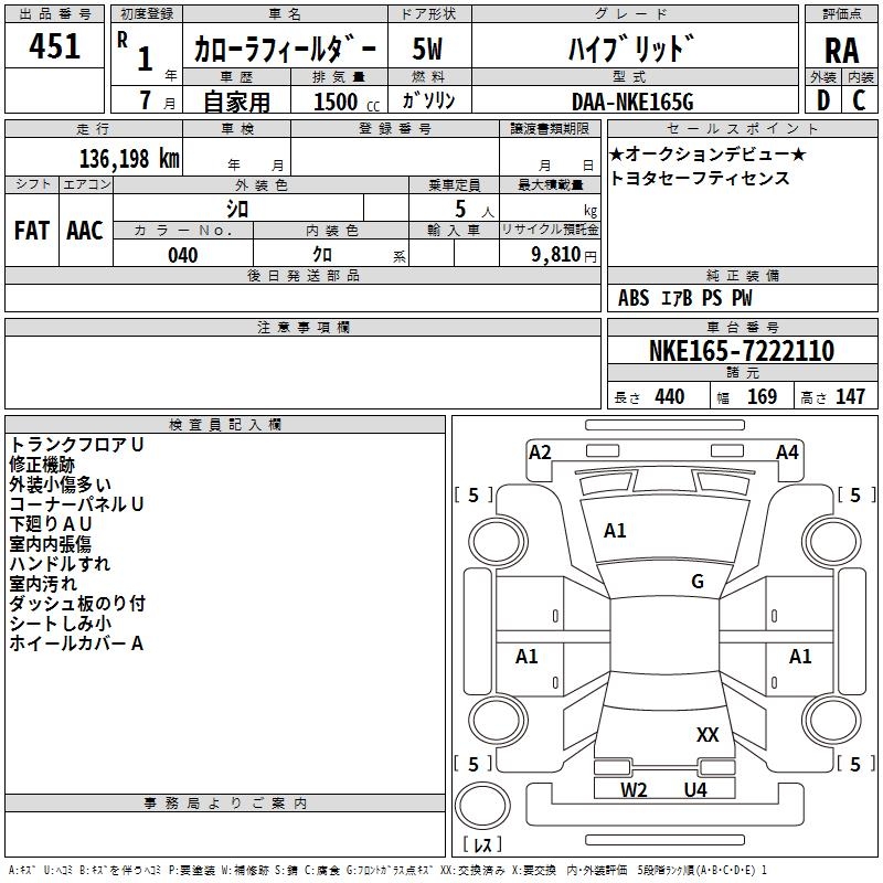 TOYOTA COROLLA FIELDER - лот 451