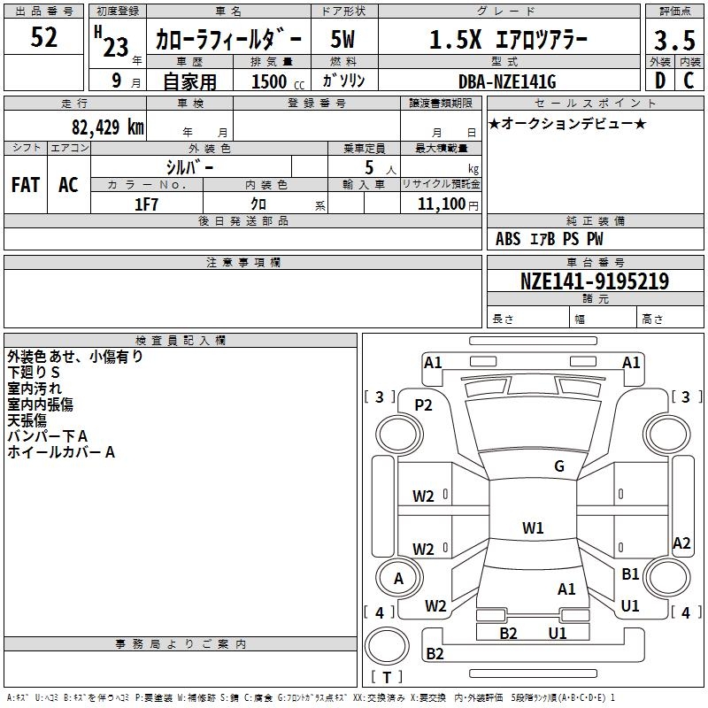 TOYOTA COROLLA FIELDER - лот 52