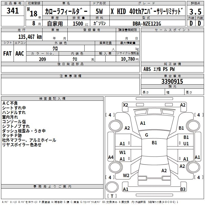 TOYOTA COROLLA FIELDER - лот 341