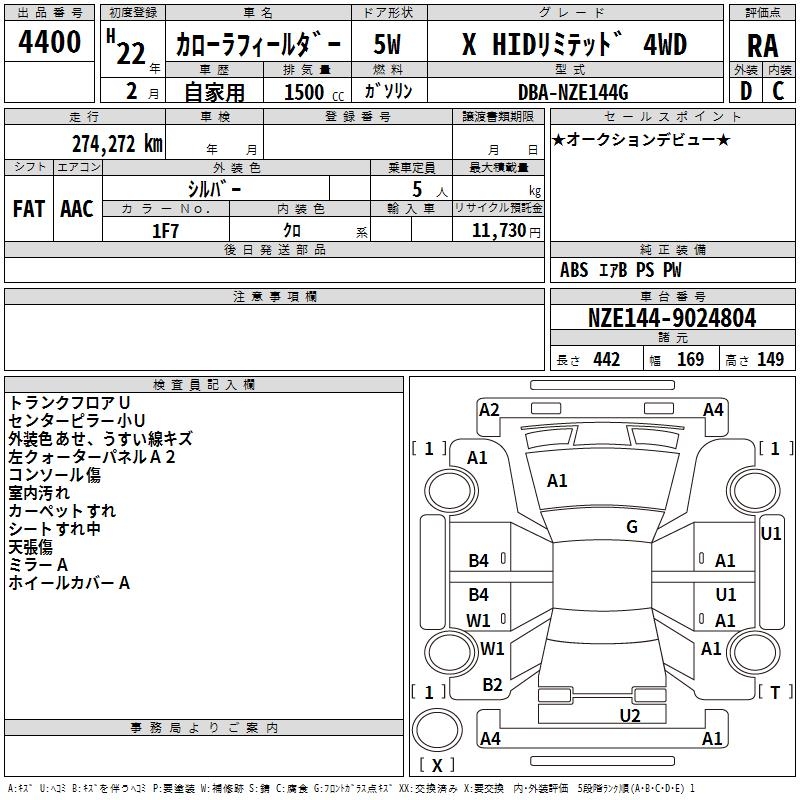 TOYOTA COROLLA FIELDER - лот 4400