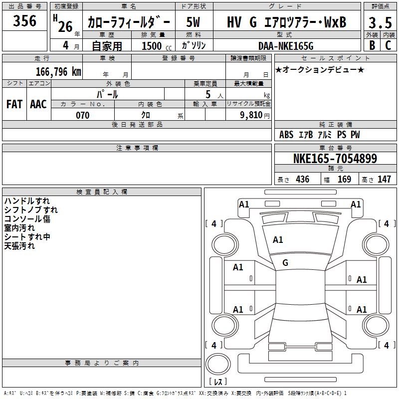 TOYOTA COROLLA FIELDER - лот 356