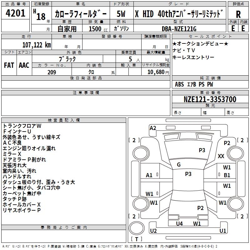 TOYOTA COROLLA FIELDER - лот 4201