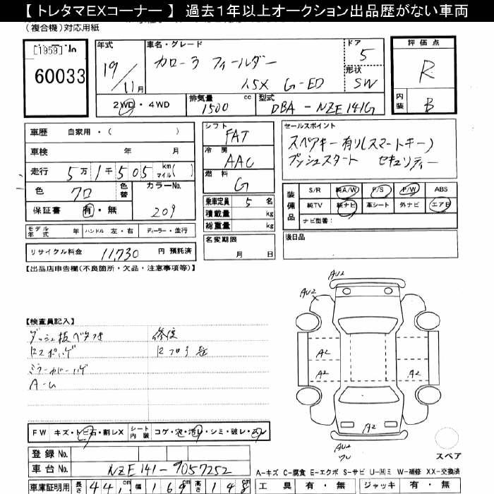 TOYOTA COROLLA FIELDER - лот 60033