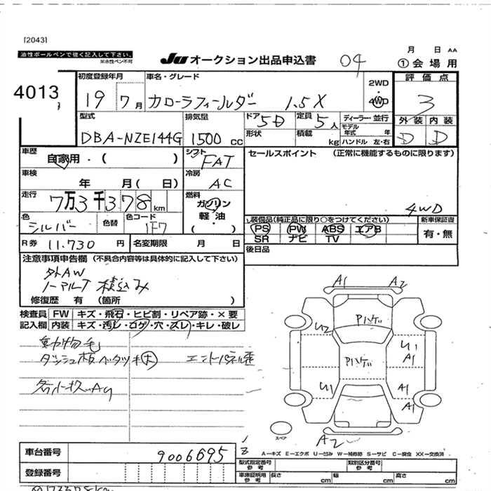 TOYOTA COROLLA FIELDER - лот 4013