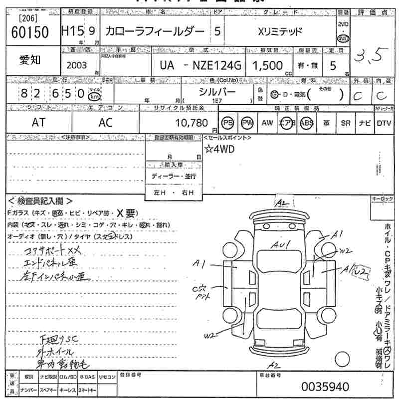 TOYOTA COROLLA FIELDER - лот 60150