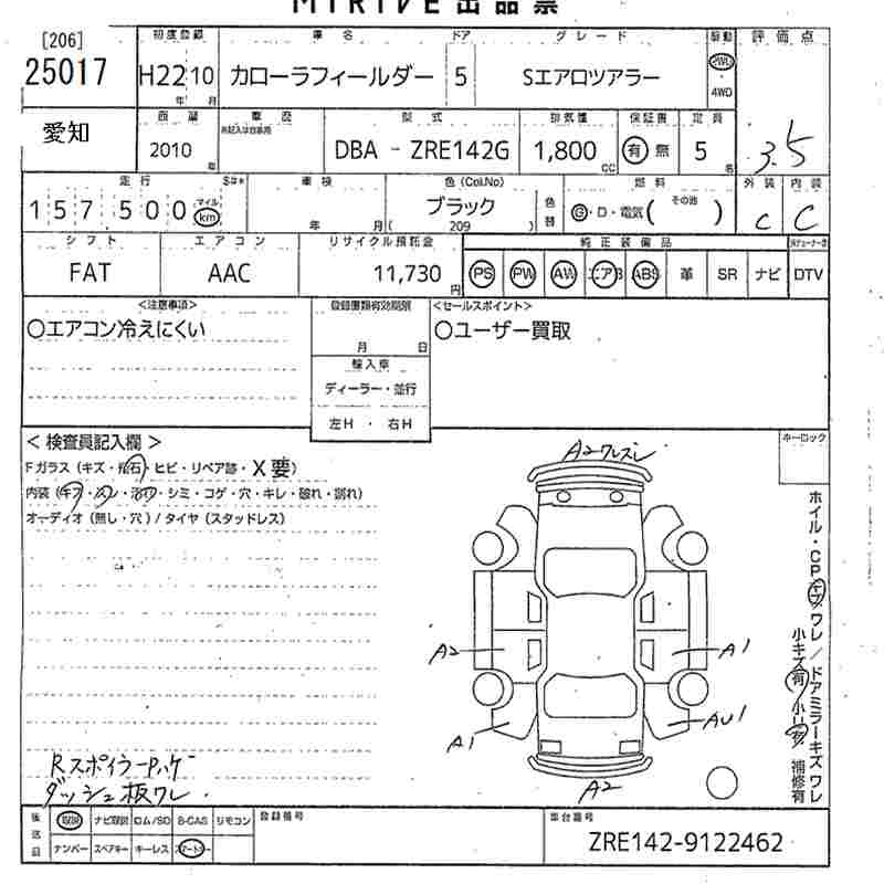 TOYOTA COROLLA FIELDER - лот 25017