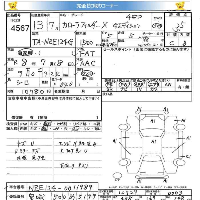 TOYOTA COROLLA FIELDER - лот 4567