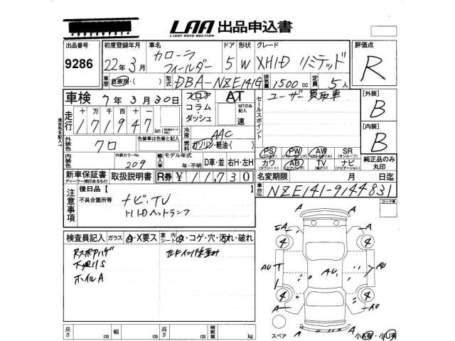 TOYOTA COROLLA FIELDER - лот 9286