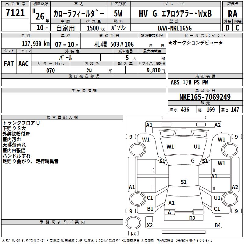 TOYOTA COROLLA FIELDER - лот 7121