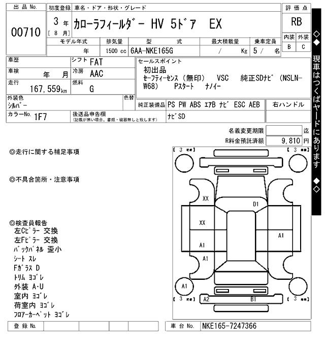 TOYOTA COROLLA FIELDER - лот 710