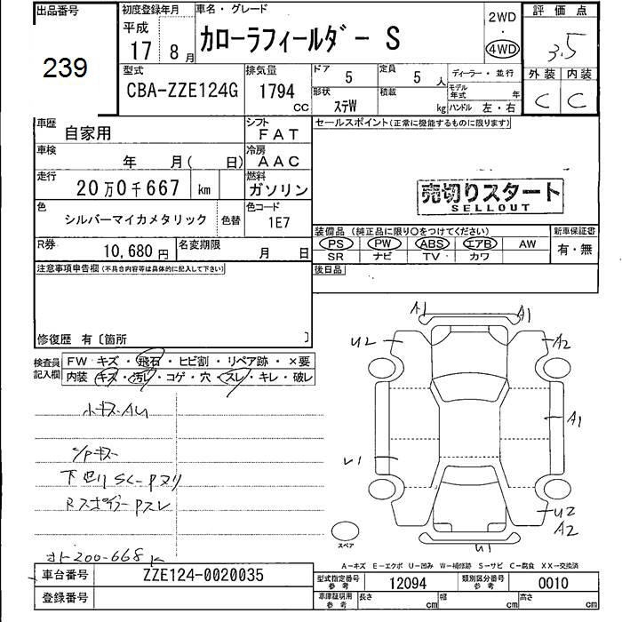 TOYOTA COROLLA FIELDER - лот 239