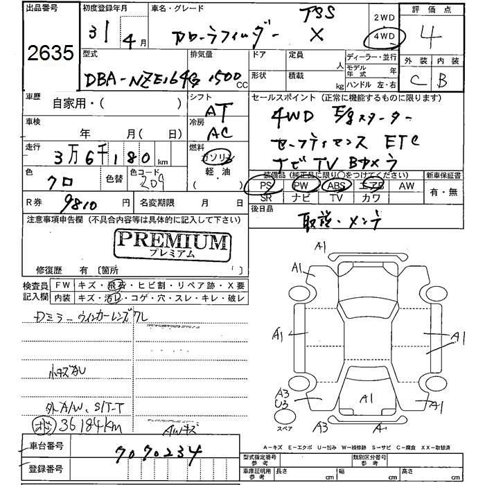 TOYOTA COROLLA FIELDER - лот 2635