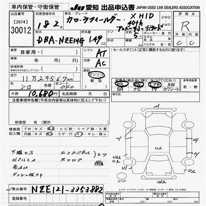 TOYOTA COROLLA FIELDER - лот 30012