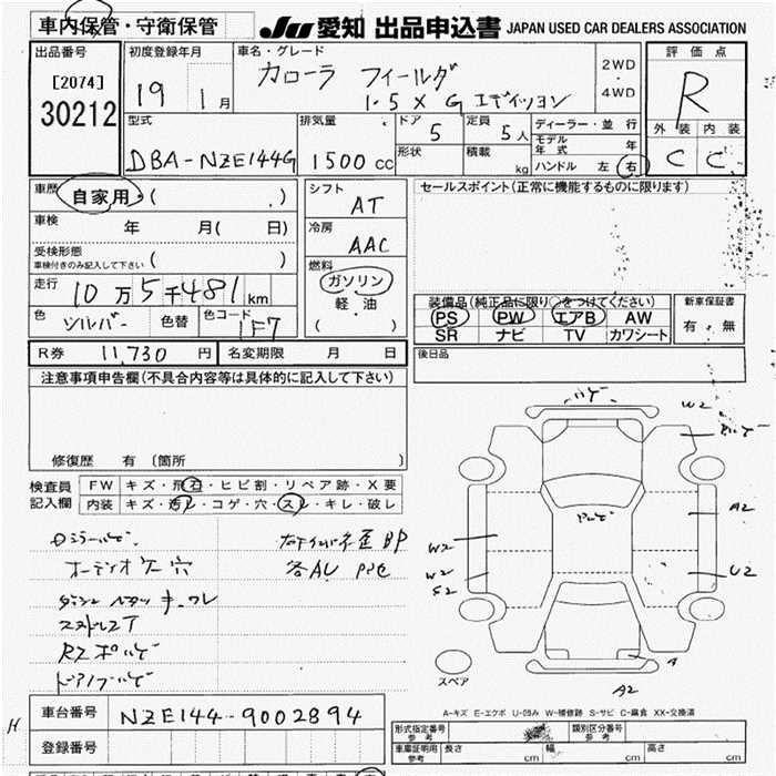 TOYOTA COROLLA FIELDER - лот 30212