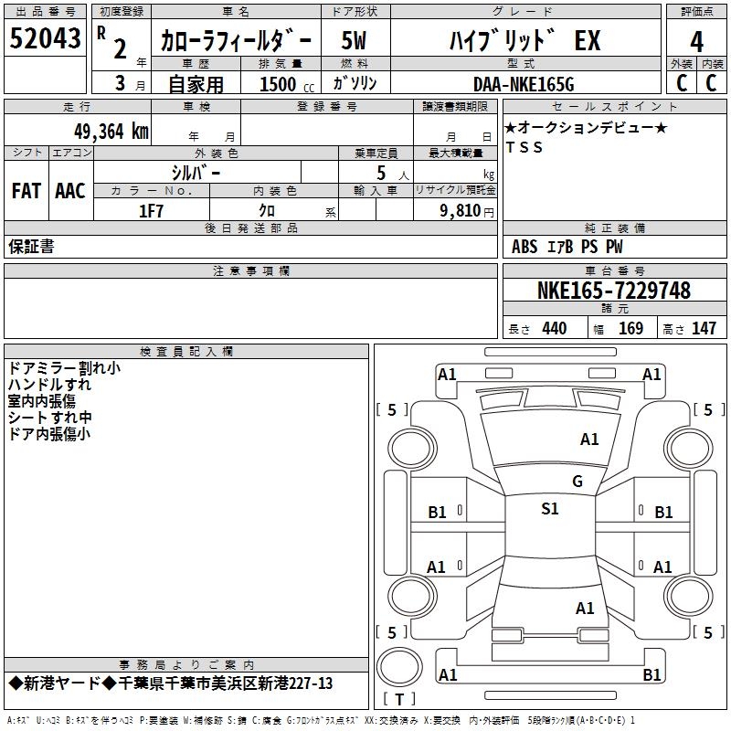 TOYOTA COROLLA FIELDER - лот 52043