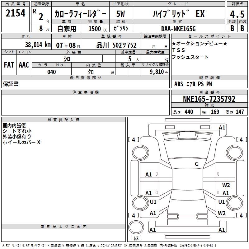 TOYOTA COROLLA FIELDER - лот 2154