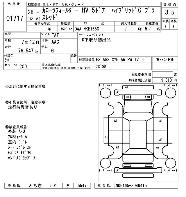 TOYOTA COROLLA FIELDER - лот 1717