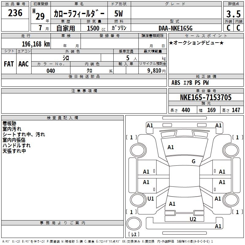 TOYOTA COROLLA FIELDER - лот 236