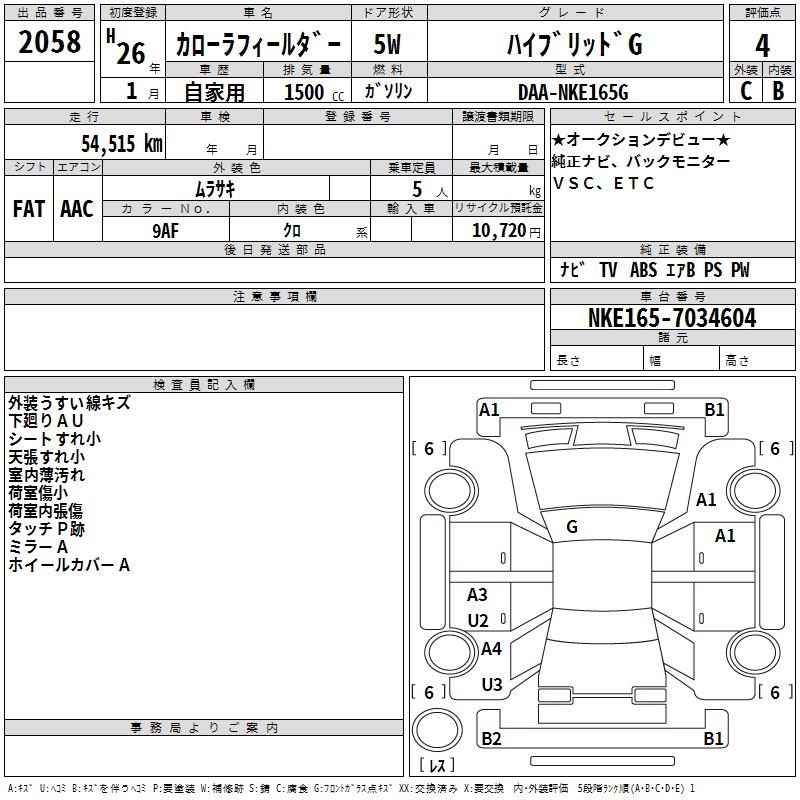 TOYOTA COROLLA FIELDER - лот 2058
