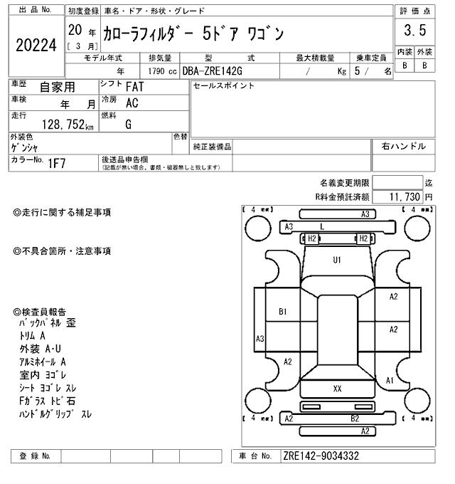 TOYOTA COROLLA FIELDER - лот 20224