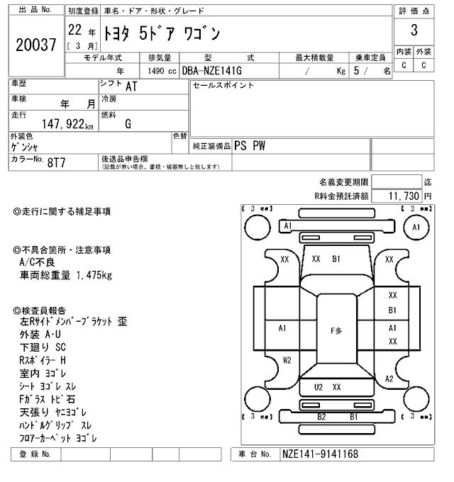 TOYOTA COROLLA FIELDER - лот 20037