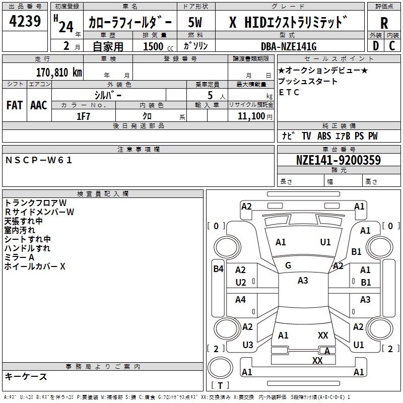 TOYOTA COROLLA FIELDER - лот 4239