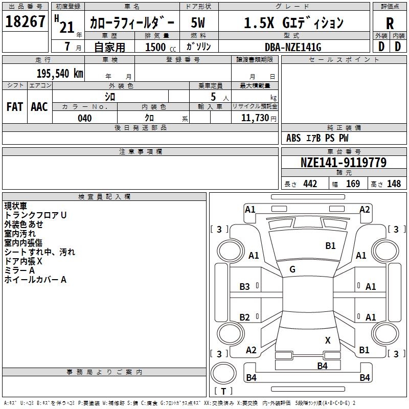 TOYOTA COROLLA FIELDER - лот 18267