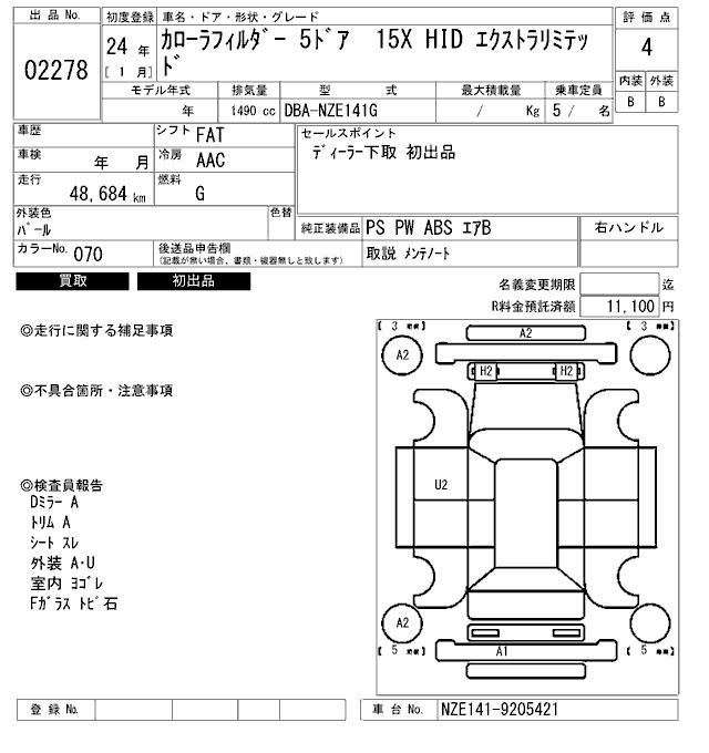 TOYOTA COROLLA FIELDER - лот 2278