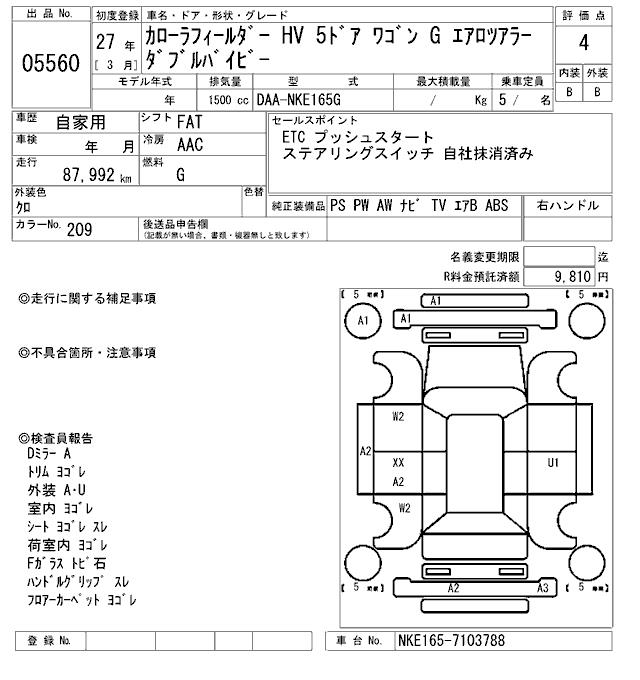 TOYOTA COROLLA FIELDER - лот 5560