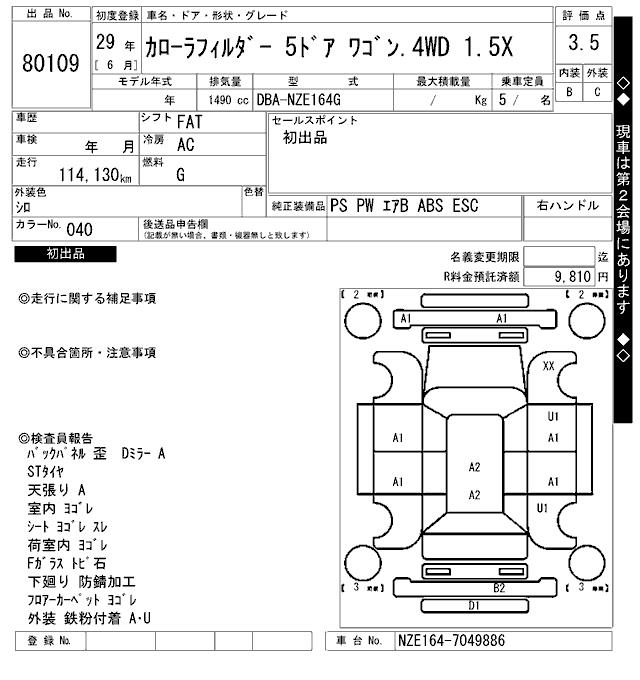 TOYOTA COROLLA FIELDER - лот 80109