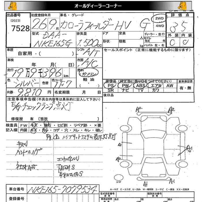 TOYOTA COROLLA FIELDER - лот 7528