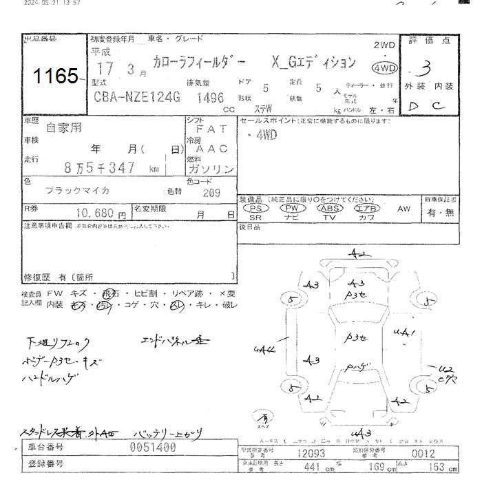 TOYOTA COROLLA FIELDER - лот 1165