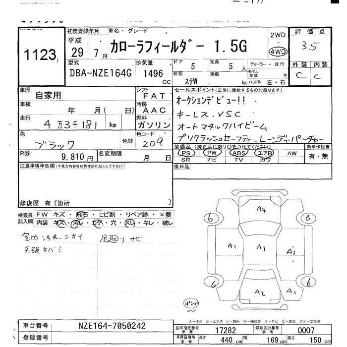 TOYOTA COROLLA FIELDER - лот 1123