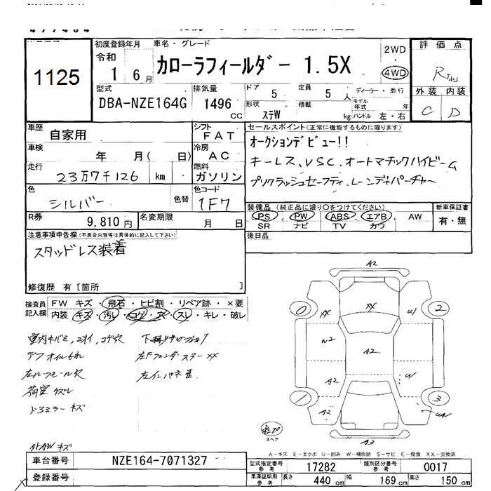 TOYOTA COROLLA FIELDER - лот 1125