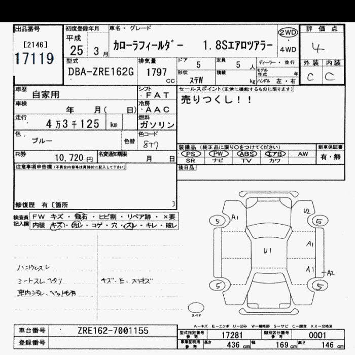 Все аукционы TOYOTA COROLLA FIELDER