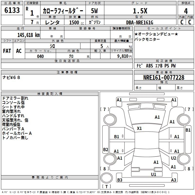 TOYOTA COROLLA FIELDER - лот 6133