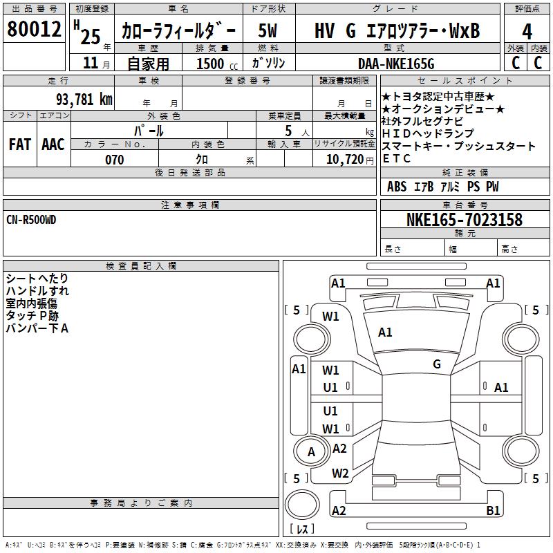 TOYOTA COROLLA FIELDER - лот 80012
