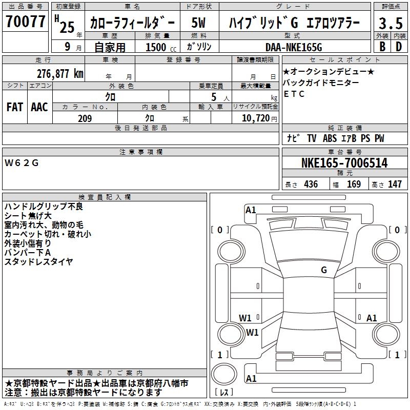 TOYOTA COROLLA FIELDER - лот 70077