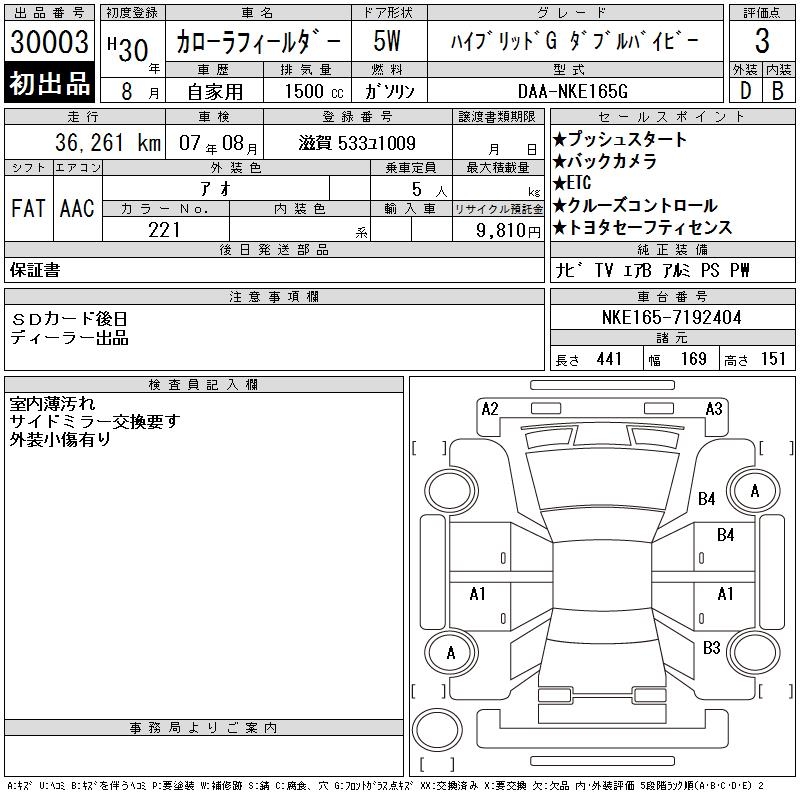 TOYOTA COROLLA FIELDER - лот 30003