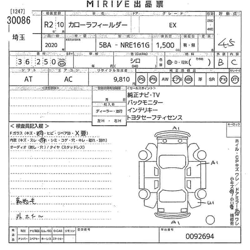 TOYOTA COROLLA FIELDER - лот 30086