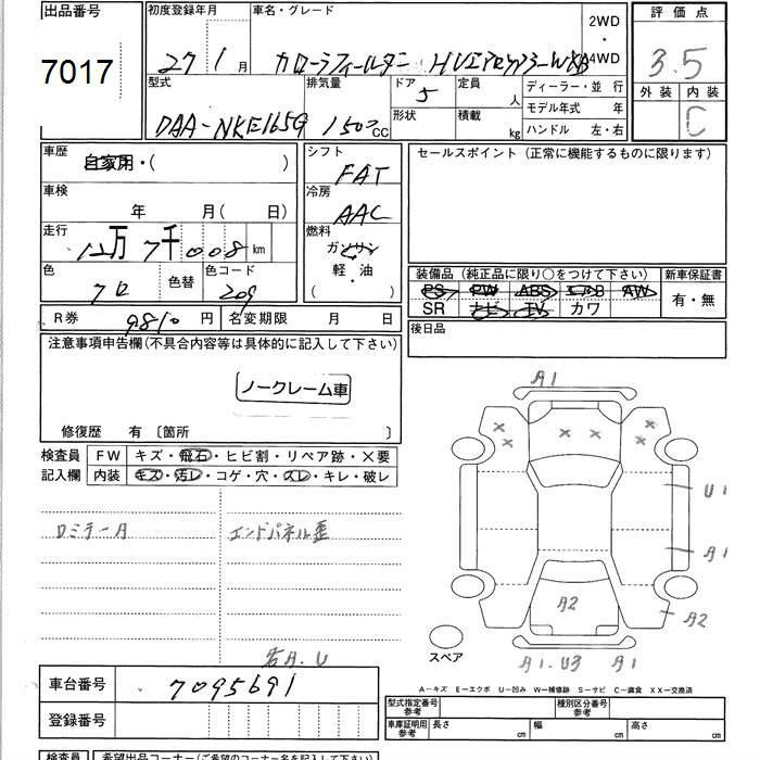 TOYOTA COROLLA FIELDER - лот 7017