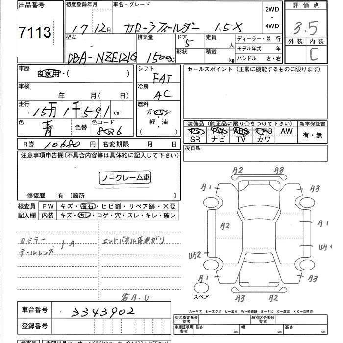 TOYOTA COROLLA FIELDER - лот 7113