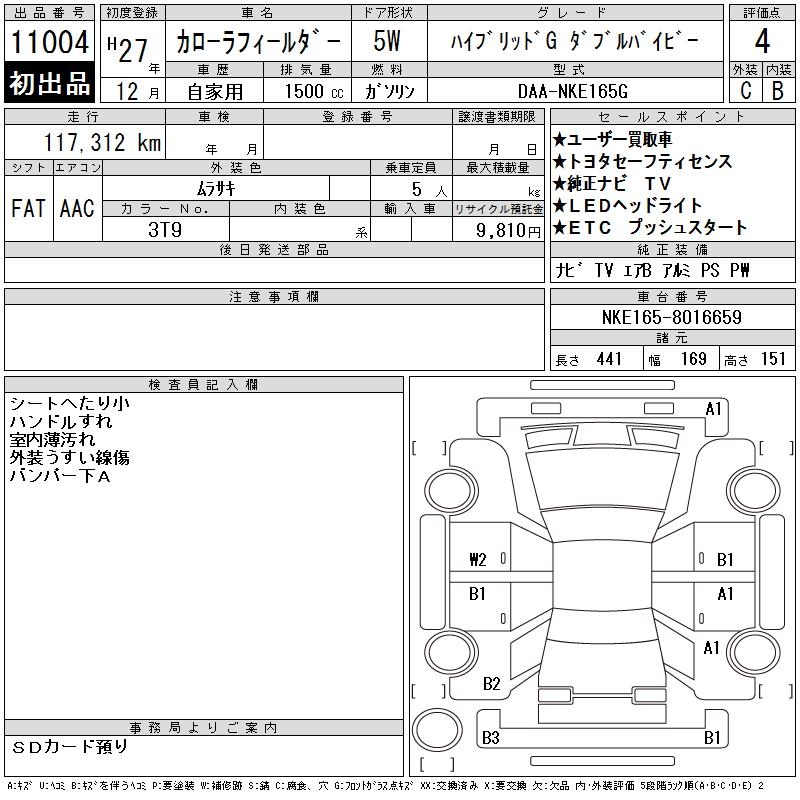 TOYOTA COROLLA FIELDER - лот 11004