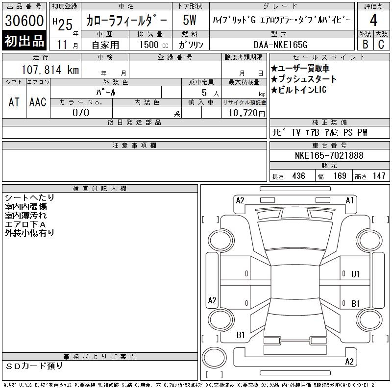 TOYOTA COROLLA FIELDER - лот 30600