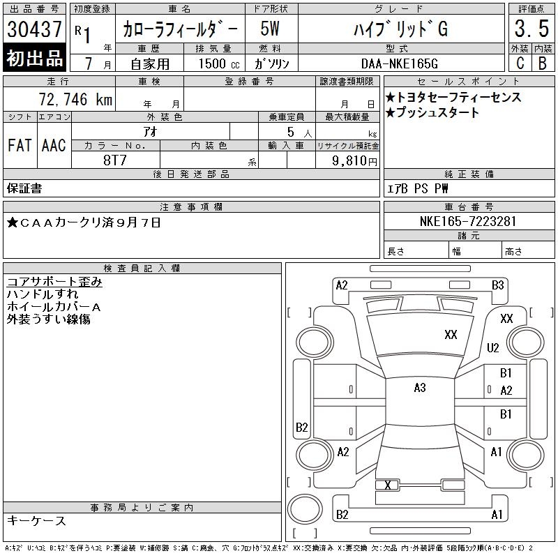 TOYOTA COROLLA FIELDER - лот 30437