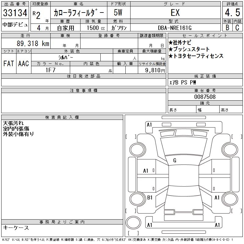 TOYOTA COROLLA FIELDER - лот 33134