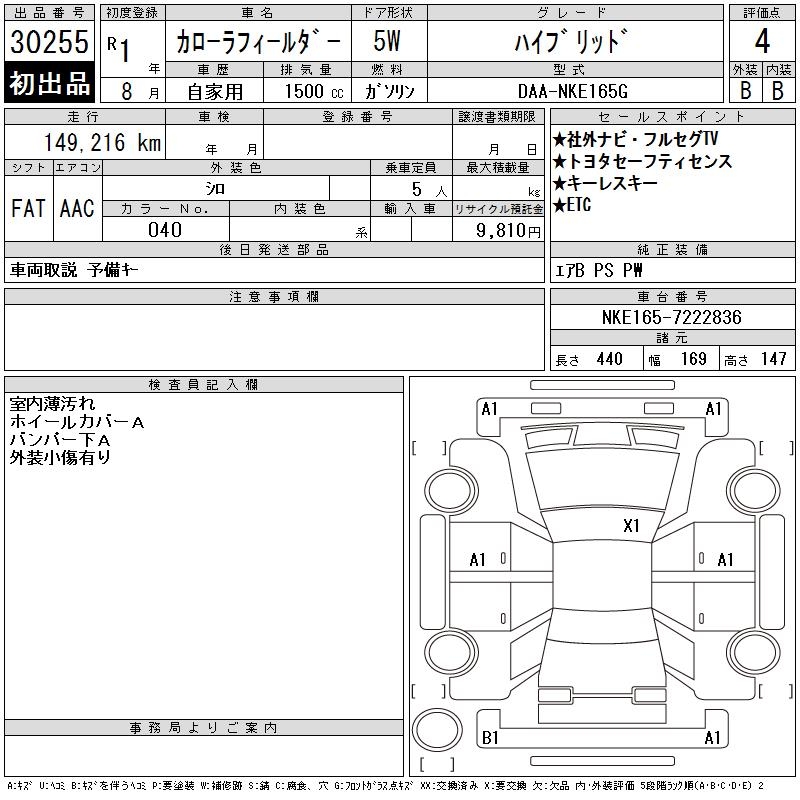 TOYOTA COROLLA FIELDER - лот 30255