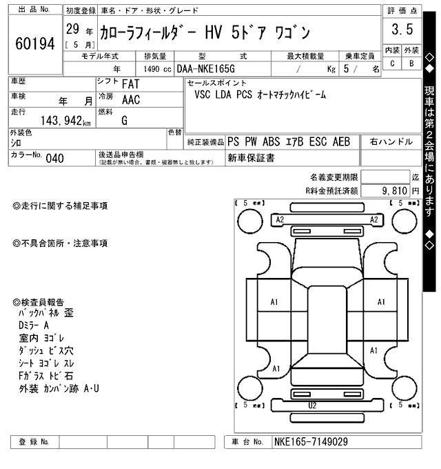 TOYOTA COROLLA FIELDER - лот 60194