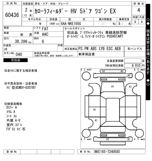 TOYOTA COROLLA FIELDER - лот 60436