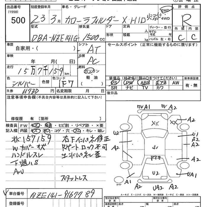 TOYOTA COROLLA FIELDER - лот 500